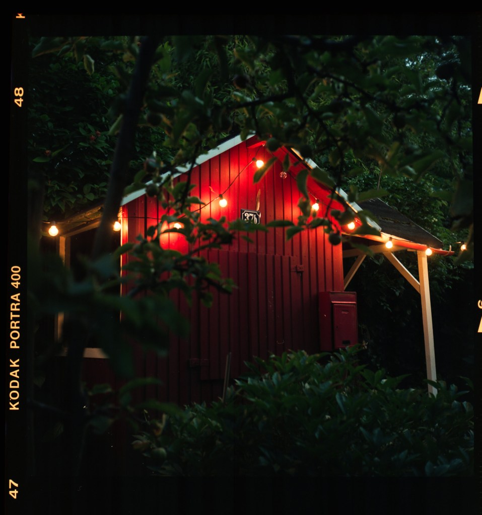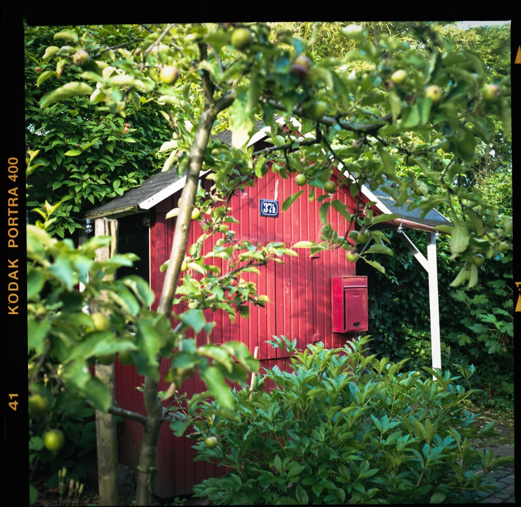 There are around 20 rolls now in my fridge and I tried my first 120 two weeks ago in our garden. We have this little red “sweden house” which was build by our landlord for his kids. It is a good object to play with. Have a look. All shots done with my Yashica Mat.